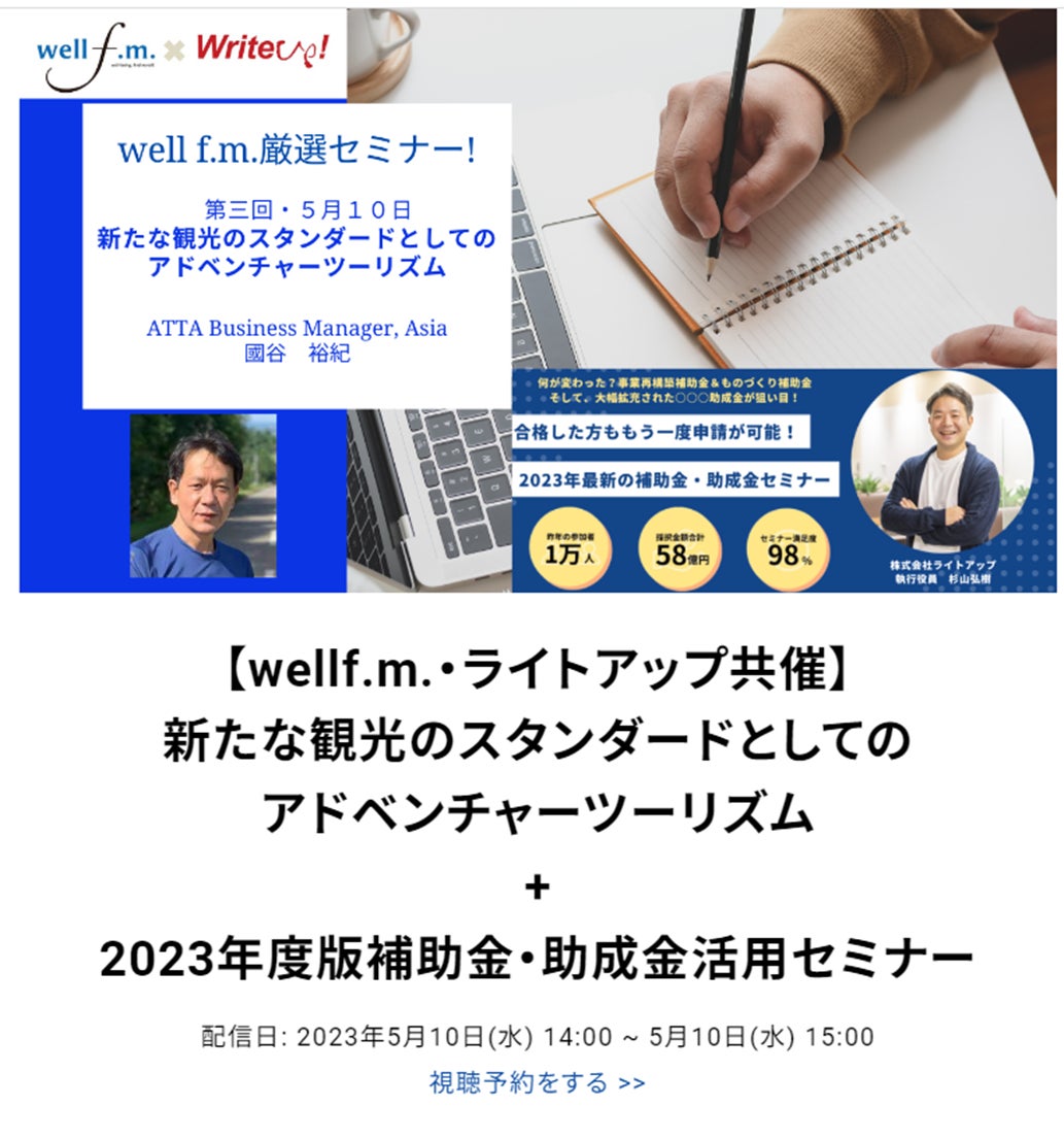 【well f.m.厳選!観光・宿泊事業者向けセミナー+23年度最新の助成金・補助金セミナー】を4月26日から9月27日まで、5か月間毎週水曜に連続開催!
