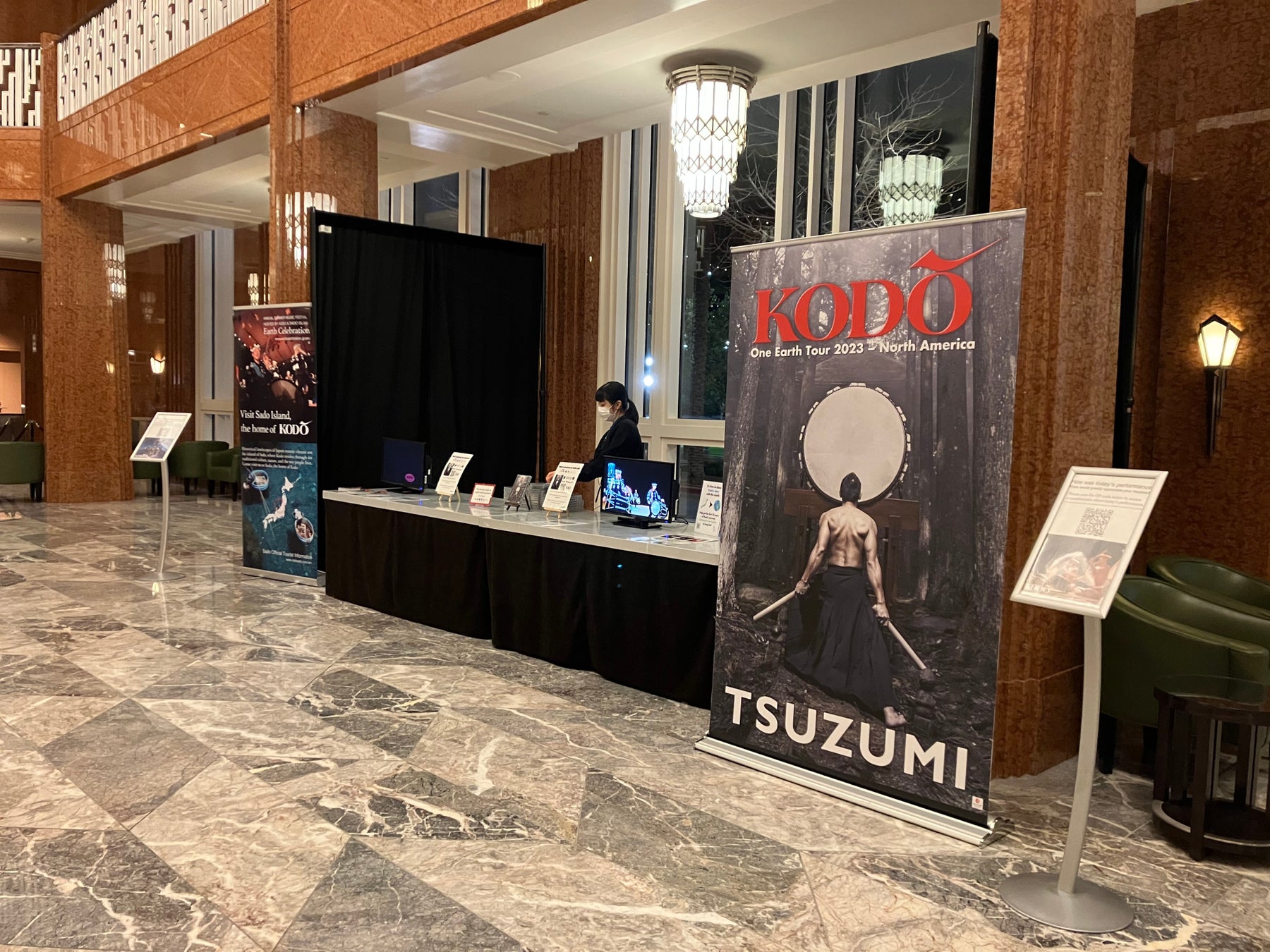 訪日着地先での鼓童メンバーが出演、演奏が盛り込まれた「オンラインツアー」参加者が「リアルツアー」に申し込む提携OTAを用意。また、全公演30会場ロビーにおける協賛自治体・DMOのプロモーションスペースでの映像訴求や、入場時に配布されるチラシ等からも、リアルツアーへの直接申し込みが可能です。